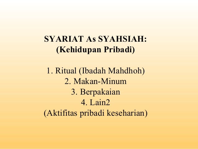 As SYAHSIAH: (Kehidupan Pribadi) 1. Ritual (Ibadah Mahdhoh) 2. Makan-Minum