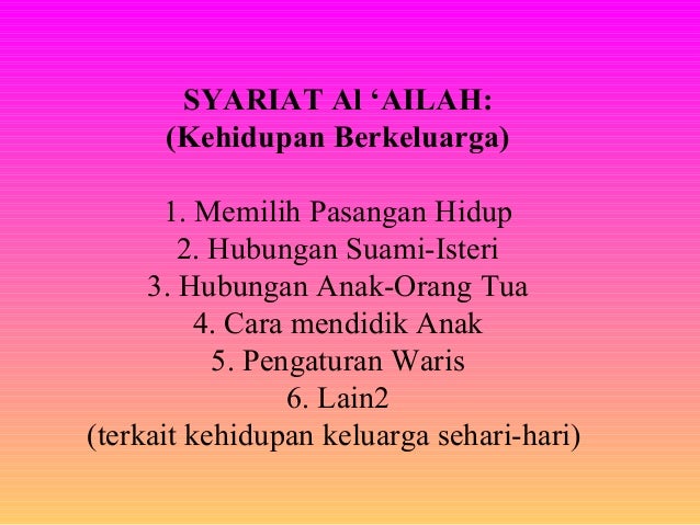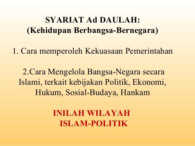 ‘Ailah (berkeluarga) 3. Syariat ad Daulah (bernegara)