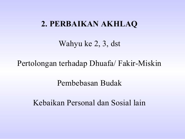 Mengenalkan Tauhid (KEIMANAN dlm Islam) 2. Mengajarkan perbaikan Akhlaq