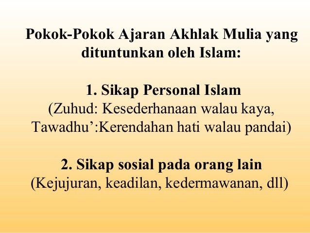 Ajaran Akhlak Mulia yang dituntunkan oleh Islam: 1. Sikap Personal Islam