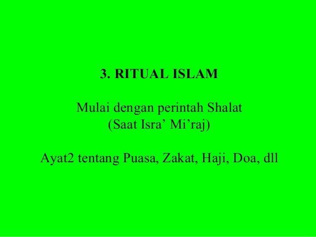 RITUAL ISLAM Mulai dengan perintah Shalat (Saat Isra’ Mi’raj) Ayat2