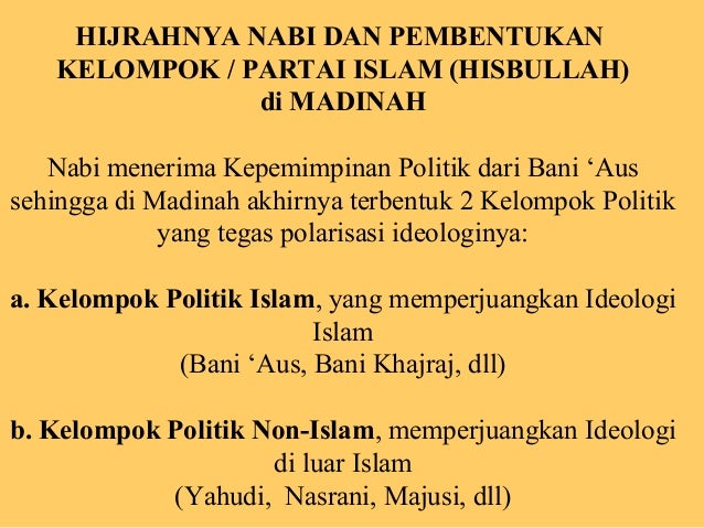 NABI DAN PEMBENTUKAN KELOMPOK / PARTAI ISLAM (HISBULLAH) di MADINAH Nabi