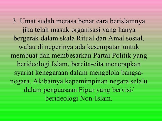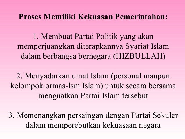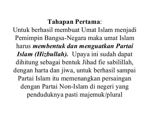 maka umat Islam harus membentuk dan menguatkan Partai Islam (Hizbullah).