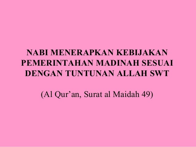MENERAPKAN KEBIJAKAN PEMERINTAHAN MADINAH SESUAI DENGAN TUNTUNAN ALLAH SWT