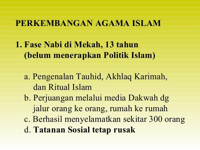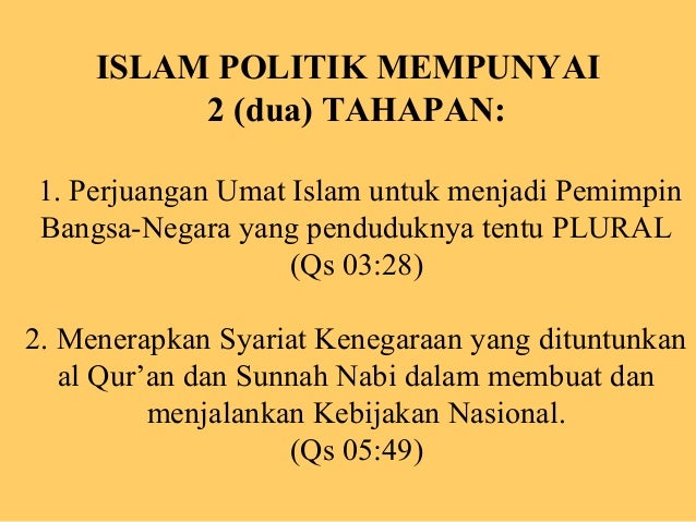 POLITIK MEMPUNYAI 2 (dua) TAHAPAN: 1. Perjuangan Umat Islam untuk menjadi
