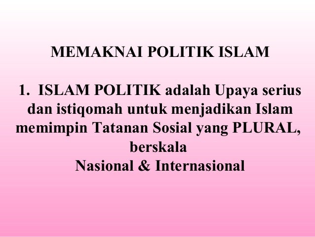 POLITIK ISLAM 1. ISLAM POLITIK adalah Upaya serius dan istiqomah untuk