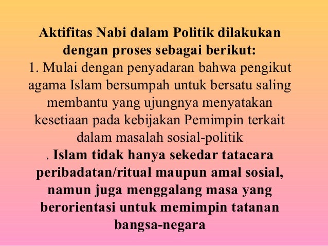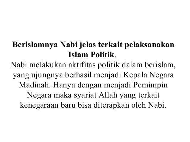 Nabi jelas terkait pelaksanakan Islam Politik. Nabi melakukan aktifitas