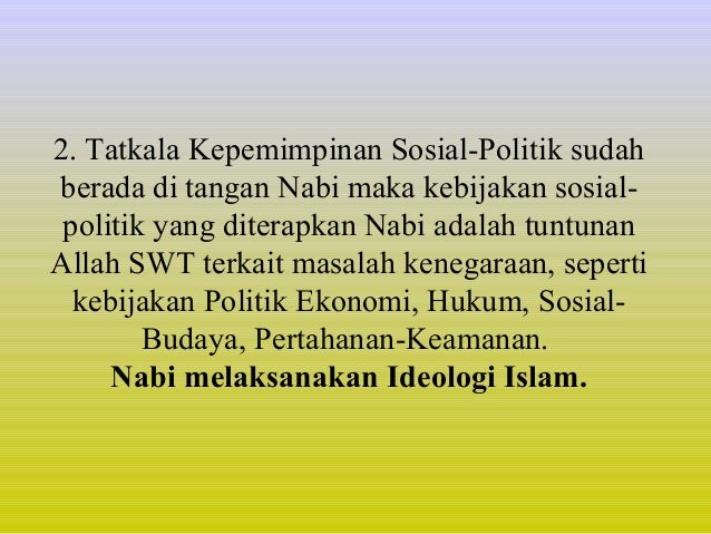 Sosial- Budaya, Pertahanan-Keamanan. Nabi melaksanakan Ideologi Islam.