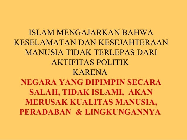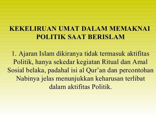 UMAT DALAM MEMAKNAI POLITIK SAAT BERISLAM 1. Ajaran Islam dikiranya tidak