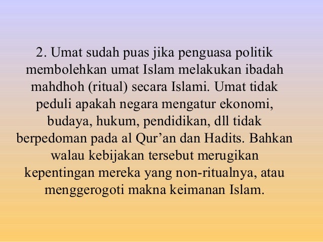 ibadah mahdhoh (ritual) secara Islami. Umat tidak peduli apakah negara
