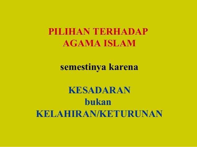 TERHADAP AGAMA ISLAM semestinya karena KESADARAN bukan KELAHIRAN/KETURUNAN