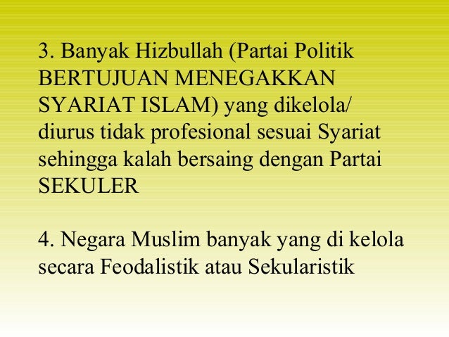 dengan Partai SEKULER 4. Negara Muslim banyak yang di kelola secara