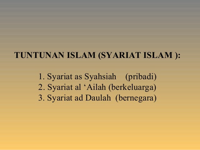 ISLAM (SYARIAT ISLAM ): 1. Syariat as Syahsiah (pribadi) 2. Syariat al